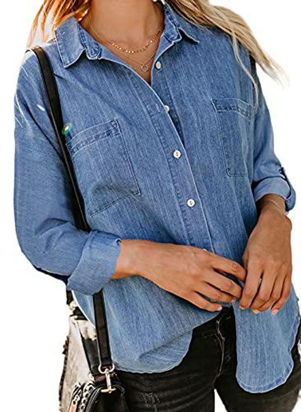 The denim shirt is a great item for the inbetween weather. It is slightly thicker than normal shirts which makes it perfect to wear on top of a blouse in lieu of a sweater and look super chick. Pair it with a black jeans for maximum effect.