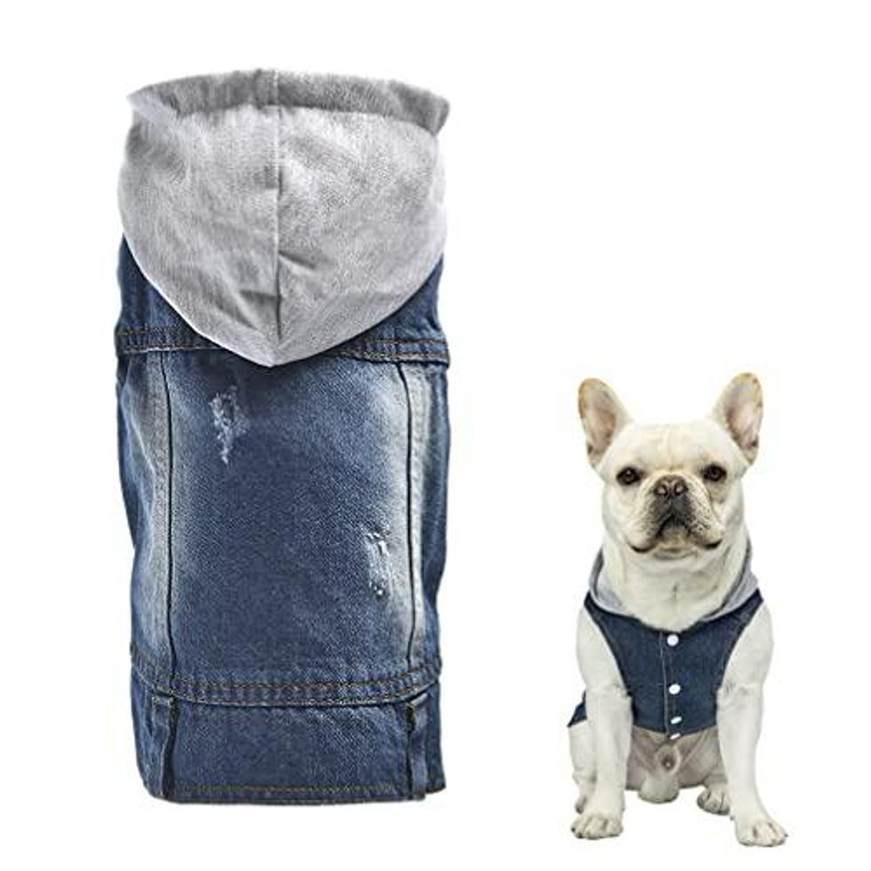 Have your dog looking effortlessly adorable and ready for any casual photo appearance with this blue denim hoodie combo; ready for the weekend ahead.