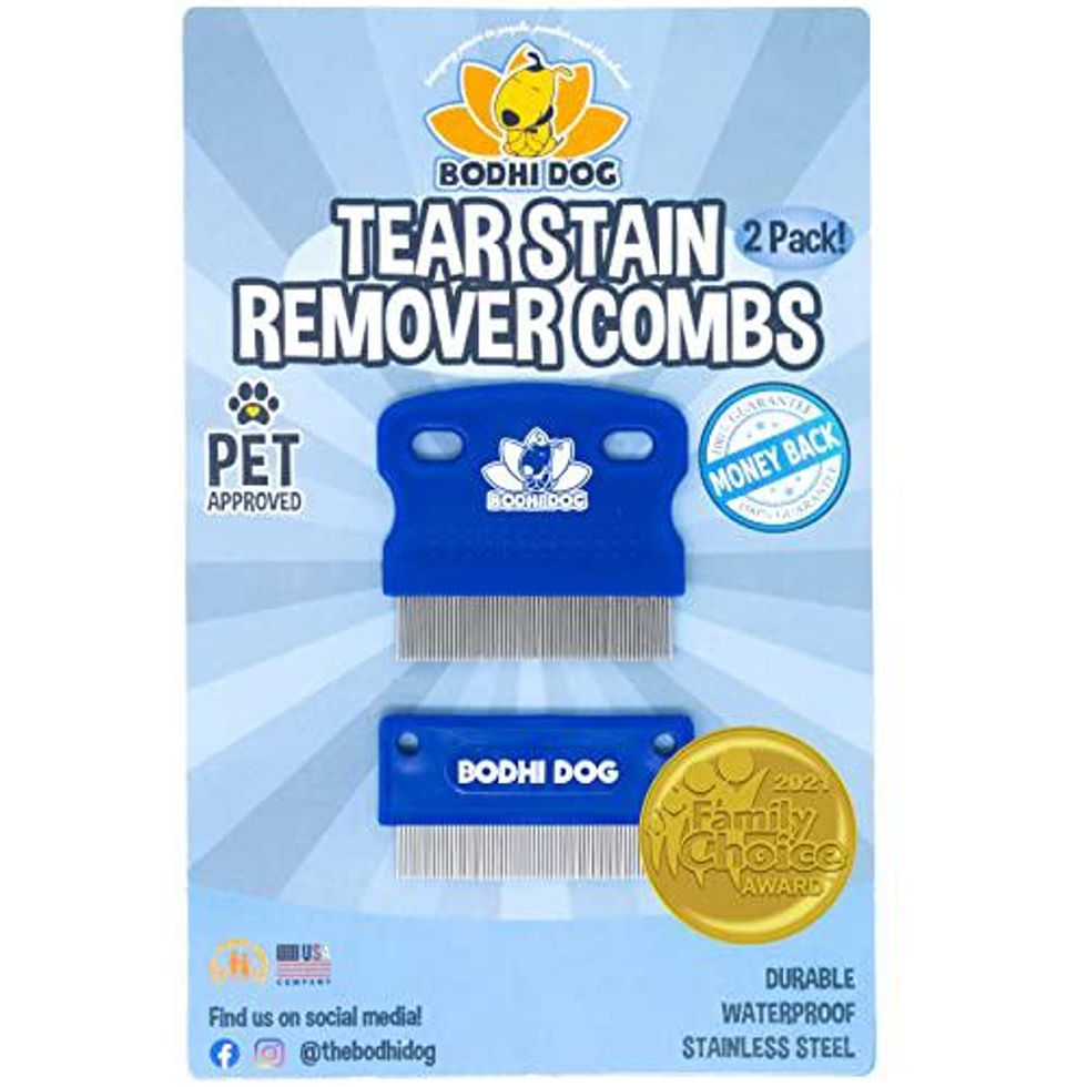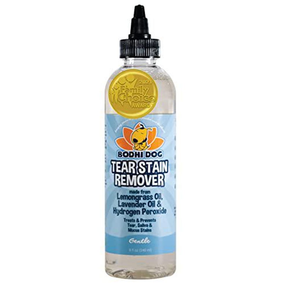 We're all familiar with the stains around the eyes of the lighter-furred breeds. Just like blondes need purple shampoo to keep up with their crisp color, your dog needs a stain removing solution.