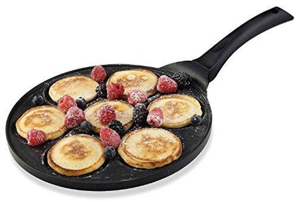 This pancake maker is versatile and absolutely perfect for preparing multiple pancakes and reducing the mess. It comes with seven built-in molds, so you can make silver-dollar pancakes in different flavors all at once. It also has an innovative induction bottom, comes with a black nonstick coating, and is safe to use with wood, nylon, or coated utensils. It's great for egg bites, too.