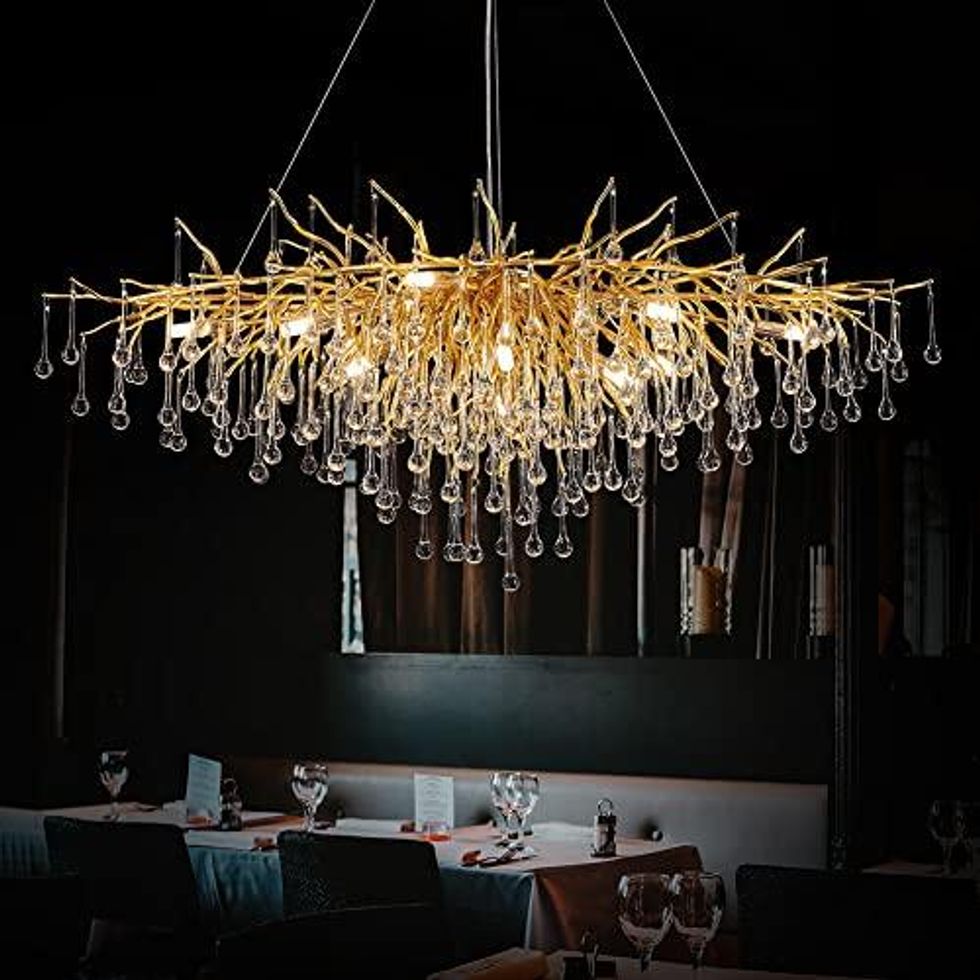 You’ll almost feel like royalty with this LIZZTREE Branch Chandelier, which has a breathtaking design that not only has beautiful golden branches, but also dazzling crystal leaves/raindrops. It’s effortlessly elegant and stunning, and will definitely make any room more luxurious in its presence.