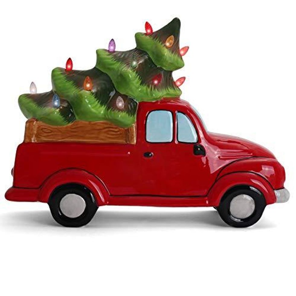 This Milltown Merchants Piece has a vintage truck with a little Christmas tree, which will make things a little more festive. And that’s not all, as it also lights up!