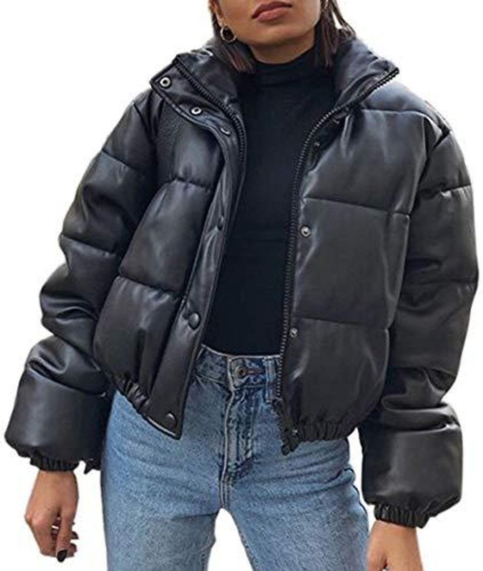 See it on AmazonA Trendy Puffer Jacket Made Of Faux Leather