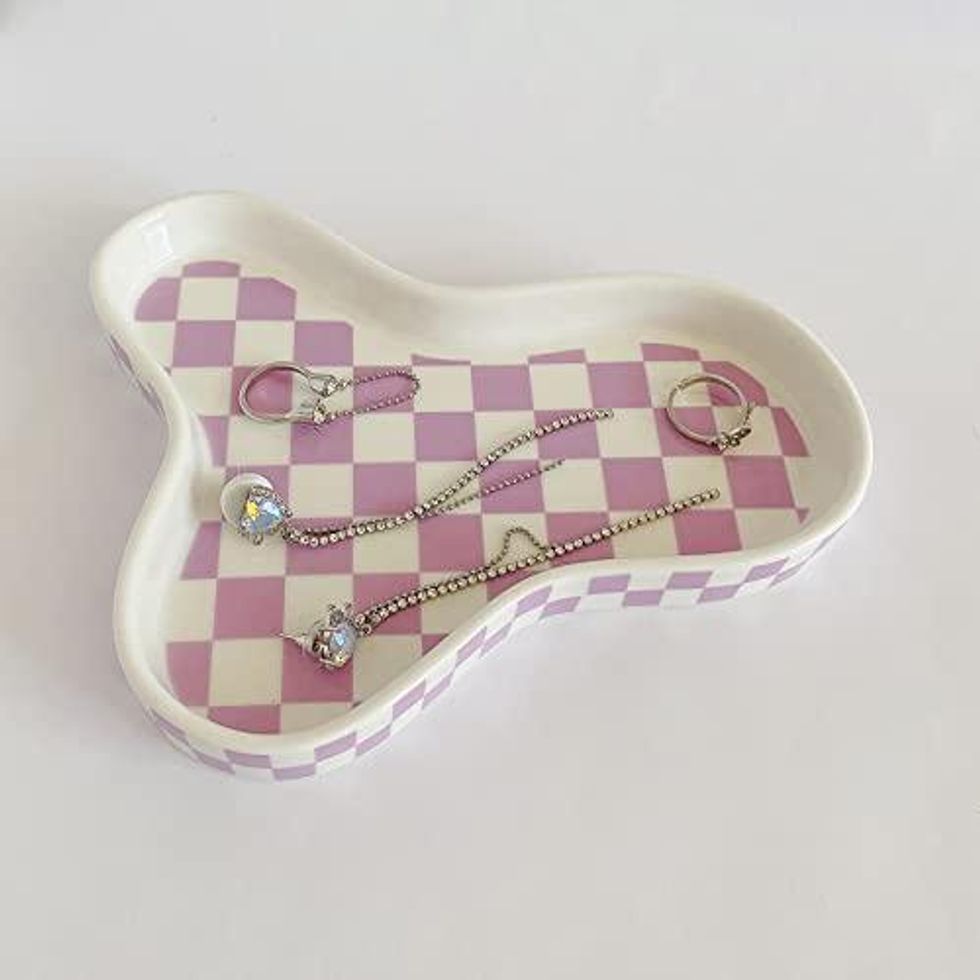 We all fell for the checkerboard throw phase of 2022... then came the pillows, and now it's the Lemonadeus Checkered Decorative Tray. This ring dish is made of ceramic and features a checkerboard pattern that adds a touch of elegance. The tray can be used as a jewelry tray to hold rings, earrings and other small accessories.