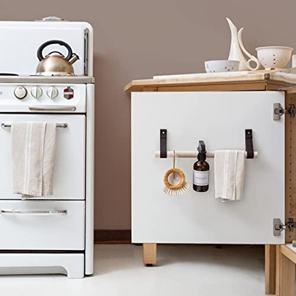 Support a small business today by purchasing this handmade Storage Rails designed for practical use inside cabinet doors. The rail attaches to the inside cabinet doors and provides additional storage space for spray bottles, towels, and other items maximizing space and keeping your cupboard tidy.