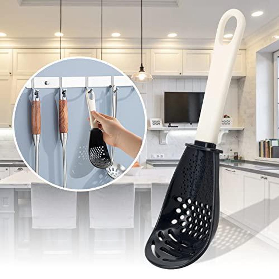 Any good chef knows the importance of having a multifunctional cooking spoon in their kitchen. Luckily, you can find one on Amazon. Not only does it grate, it also lets you mash potatoes, drain liquid, and scoop rice.