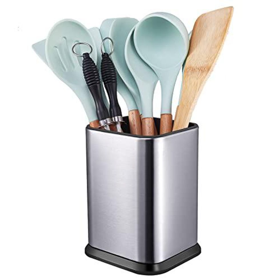 Keep all of your must-have utensils in one place with this stainless steel kitchen utensil holder. We love how it's demure so it doesn't take the attention away from any of your other decor.