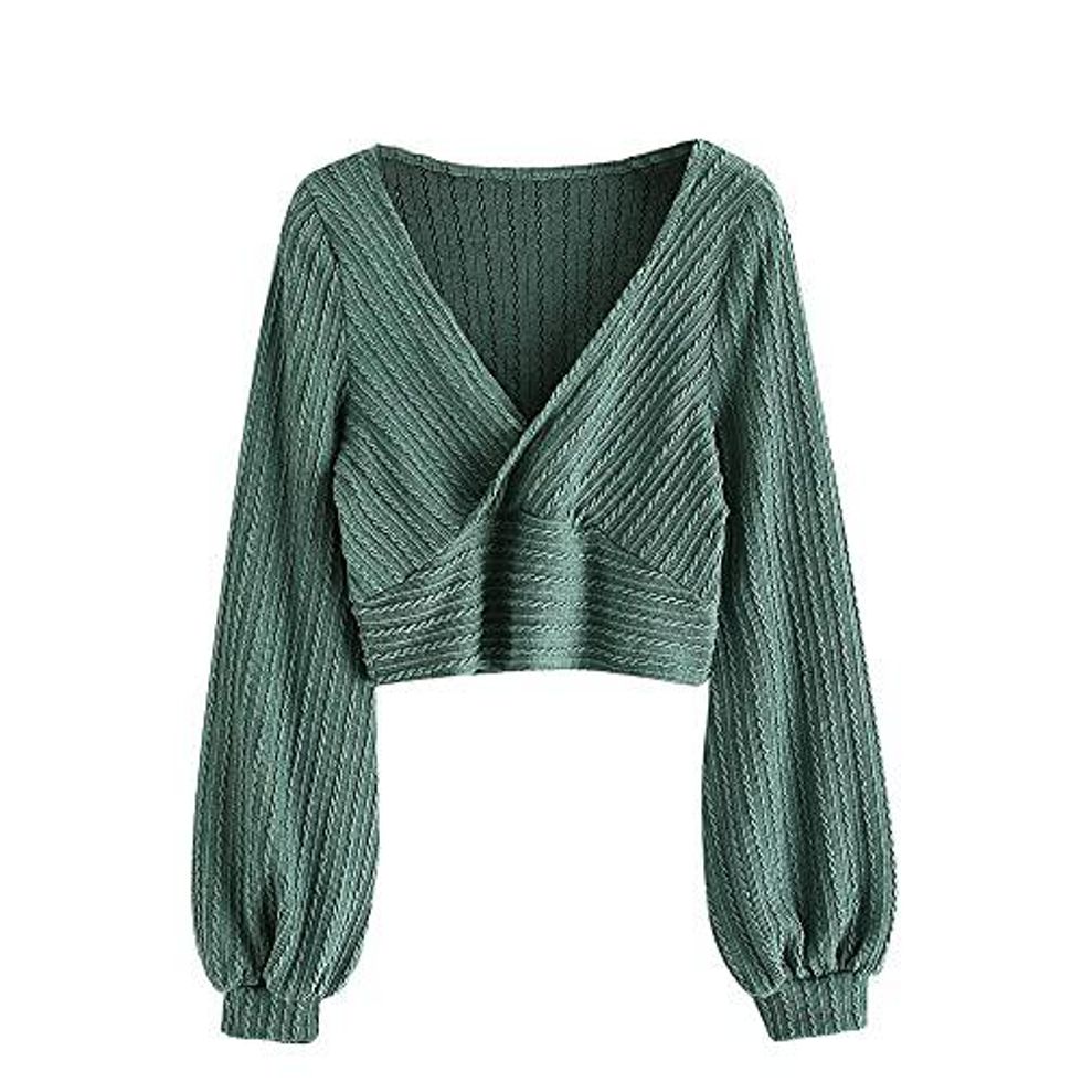 If you need a head-turning top for your next girls' night out, this knit cropped top is gorgeous. The beautiful green color looks flattering on anyone, and it can easily be paired with a mini skirt or jeans to dance the night away.