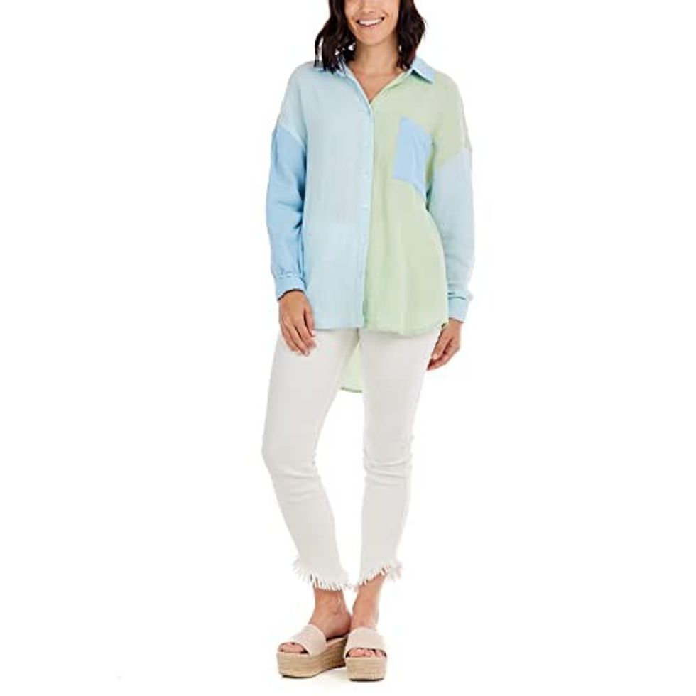 See it on AmazonThis Button Down Top For A Pop Of Color In The Office