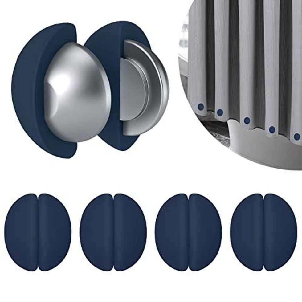 If you want your bathroom to look like something out of 'Better Homes & Gardens,' you'll definitely want to check out these magnetic weights. They hold your shower curtain nice and taut, keeping it from billowing around while you bathe. Plus, they even come in five colors to help them blend into your curtain: navy, black, grey, light blue, and white.