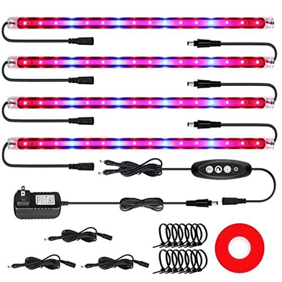 I was skeptical about these LED grow lights at first, but I decided to give them a try anyway after realizing that one of my plants was starting to wither. And to be completely honest? I'm totally blown away at how well my plant has bounced back. The brightness is dimmable up to four levels, making them suitable for plants in every stage of growth. They also feature a built-in timer, and each order includes double-sided adhesive for easy installation.