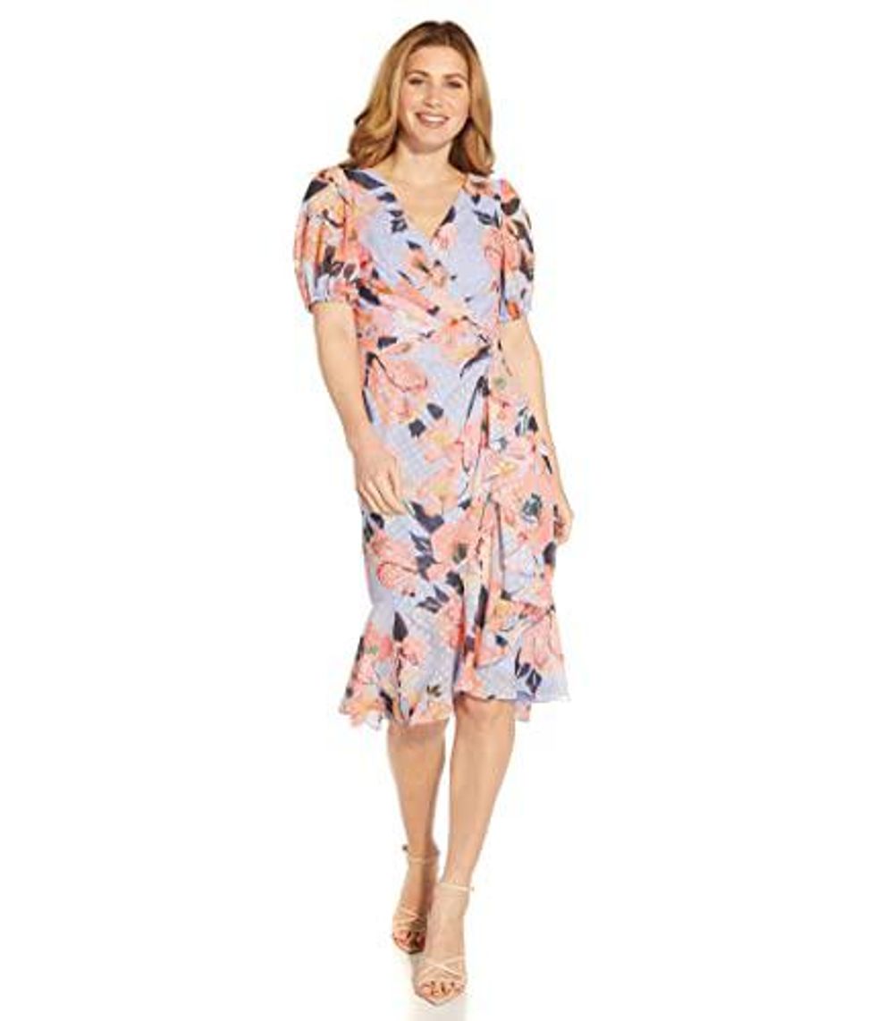 Adrianna Papell strives "to make every woman and every moment feel special," and I can't imagine not feeling special in their Floral Print Chiffon Dress. The pretty lilac background has subtle white dots and pretty pink flowers with dark purple accents. A pretty ruffle detail gives the dress a lovely shape.