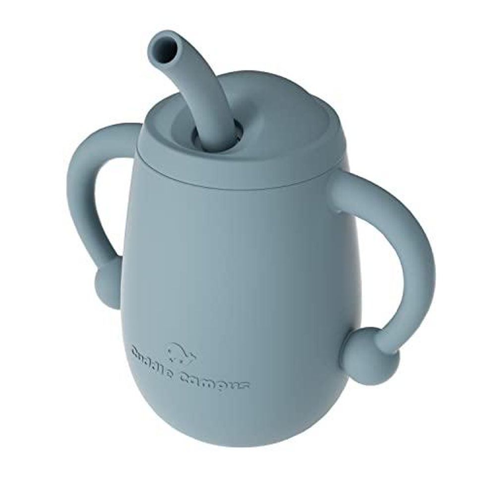 Cuddle Campus' Training Cup "is gentle and flexible, specifically designed to fit baby’s mouth and hands." The Cup is designed to grow with your child, as it can be used with or without the straw. It's BPA Free, microwave and dishwasher safe.