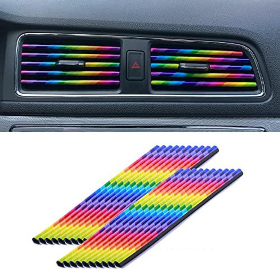 I was clicking through Amazon's New Releases when I saw an item I hadn't seen before. It was so unusual that I even had my husband come look at it. I just thought of it as a novelty, so I was very surprised that he thought it was so cool. He even said if he had a new car he would want to get some Vent Decoration Strips. I guess he's not as boring as I thought he was! The Strips are available in 10 colors.
