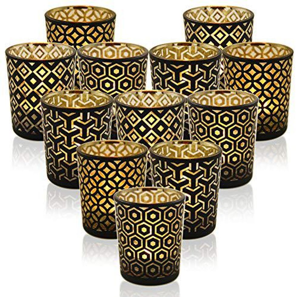 Candles are one of my favorite ways to add ambiance to a space, so I'm always on the lookout for a good holder. This set of twelve comes with multiple patterns in a bold black and gold. Yes please.