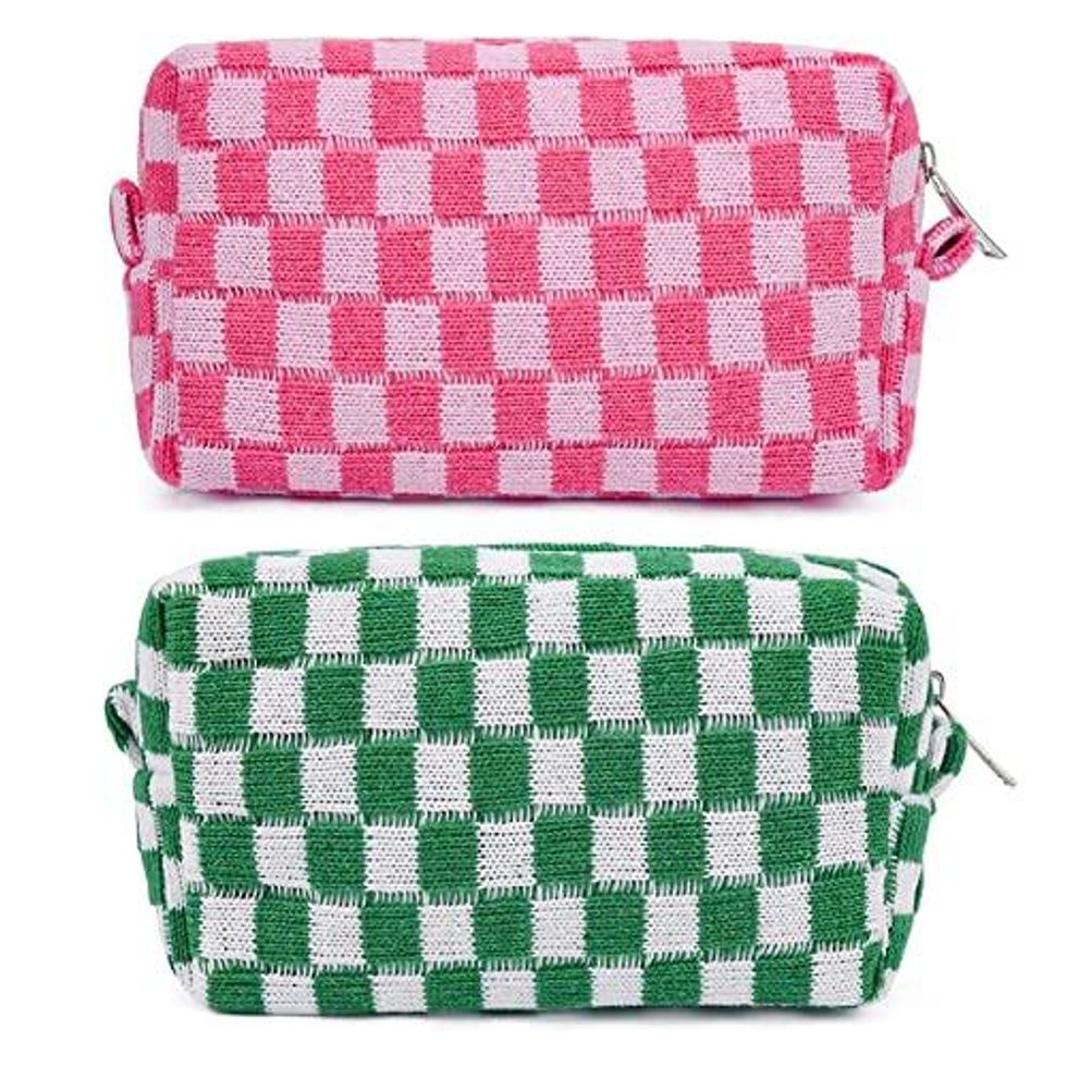 Whether you are traveling for the holiday season or looking for a new bag to store all of your favorite cosmetics in, this Cosmetics Bag Set is all you need to get there. This set comes with two checkered print bags that come in a variety of different color options, and have plenty of space to hold all of your favorite beauty products and makeup brushes.