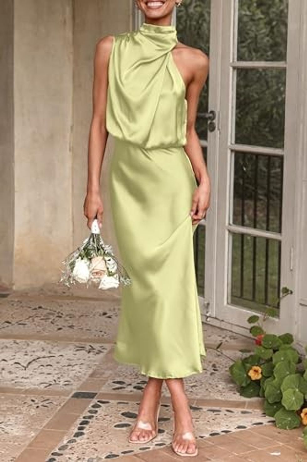 Indulge in the luxury and sophistication of this Satin Halter Neck Dress, a timeless choice that exudes class and charm. Nothing quite matches the luxury of a fully satin ensemble. The halter neck design adds a touch of allure, accentuating your silhouette with grace. Beyond its New Year's Eve appeal, this versatile dress transcends the occasion, making it a practical and chic addition to your wardrobe.
