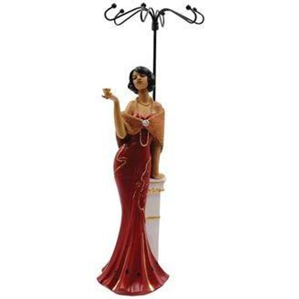 The Red Dress Jewelry Holder draws inspiration "from an era of sophistication and elegance." Verified Purchaser, sapphire1275, says, "This jewelry holder is so very pretty. I have my bracelets hanging on the hooks. It is sheek and lovely to display on any dresser." The Figurine is 10.6" tall and is made of resin.