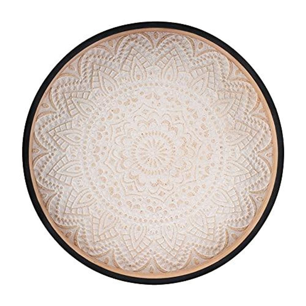 The Round Wood Tray can be used for decor, as a serving tray, or as a centerpiece. The Tray features a unique whitewashed floral motif. It's available in Faded White or Wood and is 12" x 12." Keep in mind that the Faded White option doesn't have the raised side that the Wood version does.