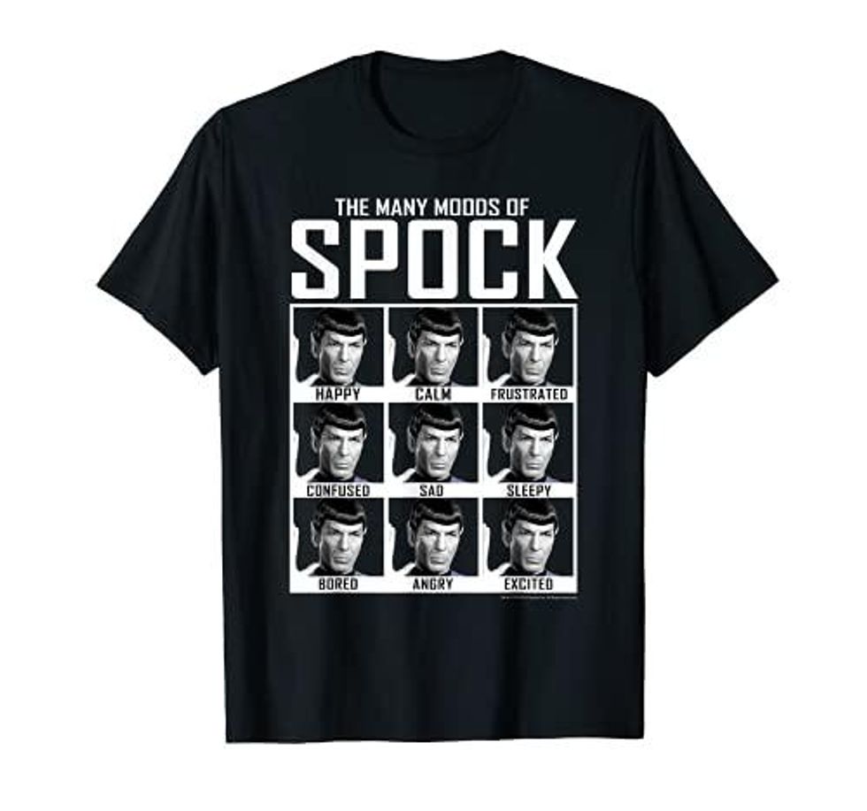 Thanks for reading about our favorite finds from across the internet! FYI: We participate in affiliate programs and may get a share of the revenue from your purchase.Give A Star Trek Original Series Moods of Spock T-Shirt To The Person Who Has Trouble Showing Their Feelings