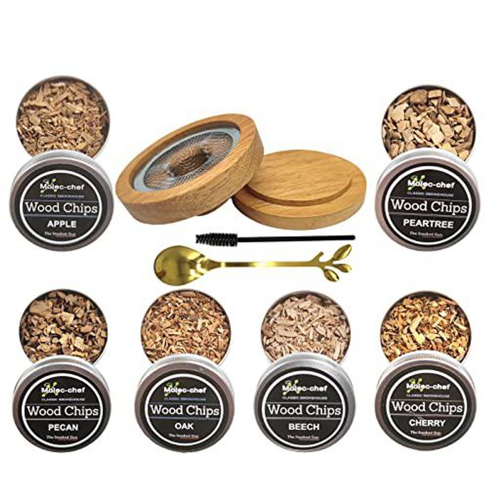 I've seen cooking shows on TV that featured restaurants using smoke to create fancy unique appetizers, but I never thought of applying smoke to cocktails. This Cocktail Smoker Kit comes with a smoke infuser, a cleaning brush, spoons, filter, and 6 different flavor wood chips. The wood chips do not contain any artificial fragrance ingredients and are air-dried to the right humidity. Chips included are apple, cherry, beech, pear, pecan, and oak.