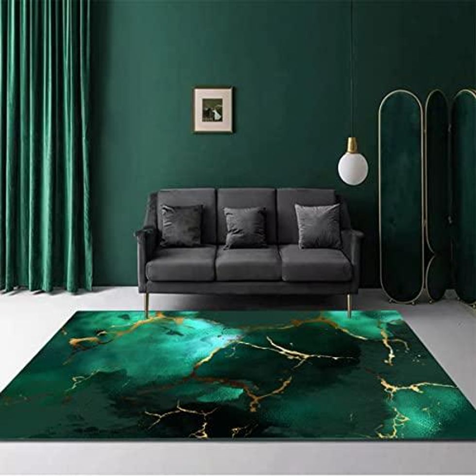 See it on AmazonThis Green Gold Marble Pattern Modern Abstract Area Rug Will Pull Your Living Room Together