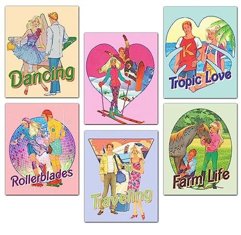 This is quintessential nostalgia Barbie. If you want to bring some Barbie charm to your home, this Vintage B & Ken Room Wall Decor Set of 6 will certainly do the trick. With 6 posters of vintage Barbie on your walls, you can't get any more Barbiecore. Use these to build a Barbie gallery wall, or put these posters around your house to bring a little Barbie to every room.