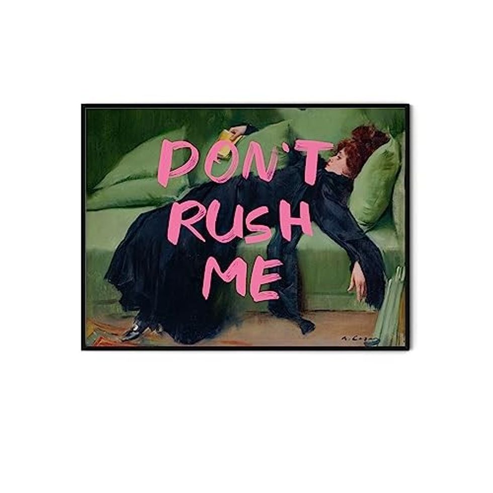 Some Barbies take a while to get ready. Unlike the Barbies in Barbieland, we actually have to put some time and effort into getting ready. If you are one of those people who is perpetually running late because you're putting the finishing touches on your makeup or trying to find the perfect outfit, don't worry, this Barbie is also guilty. For the always late girlies like me, this TwoDays Maximalist Wall Decor with pink text that says "Don't rush me" is essential.