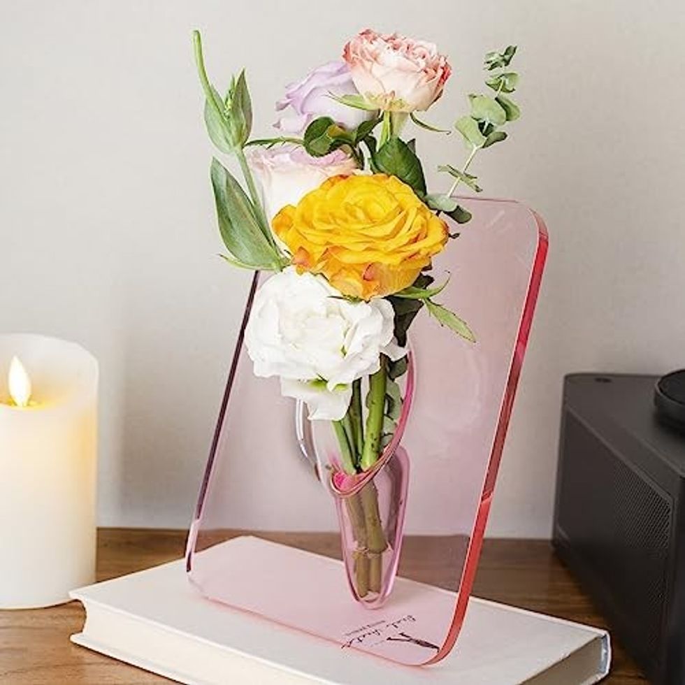 See it on AmazonThis EASY365 Pink Clear Acrylic Flower Vase is Seriously Unique