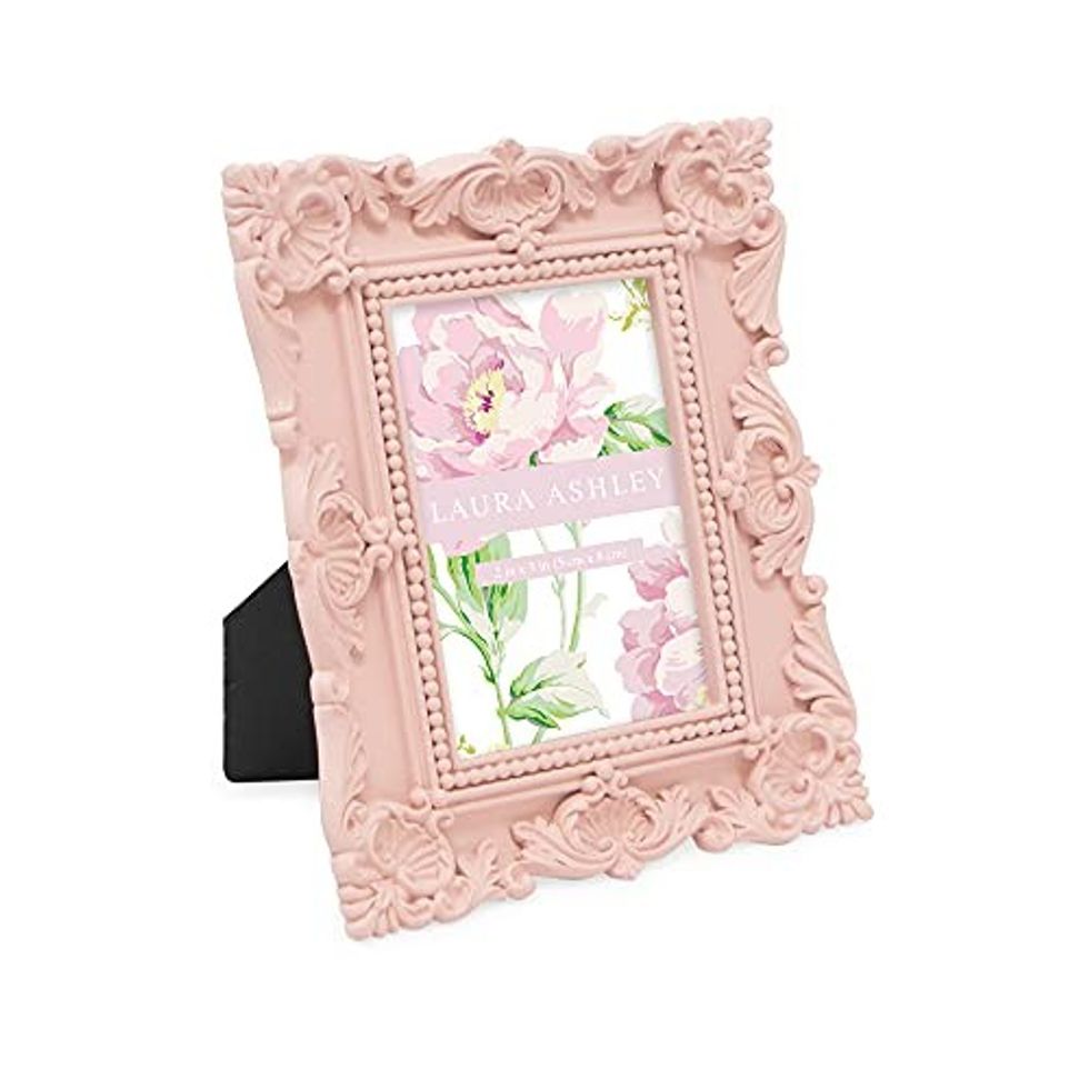 See it on AmazonShow Off the Ones You Love with the Laura Ashley 2x3 Pink Ornate Textured Hand-Crafted Resin Picture Frame with Easel