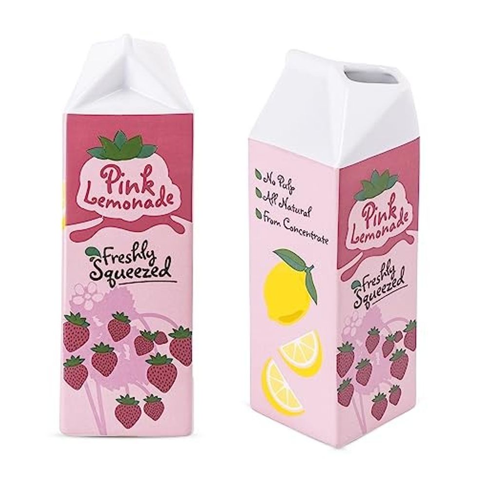 Who brought the Vintage Inspired Ceramic Vase back from Barbieland? This eclectic and unique vase looks like it belongs in a dollhouse but has somehow transported itself to our world. This doll-like juice carton is cute enough to be decor on its own, but feel free to add some fake flowers to give it an extra flair.