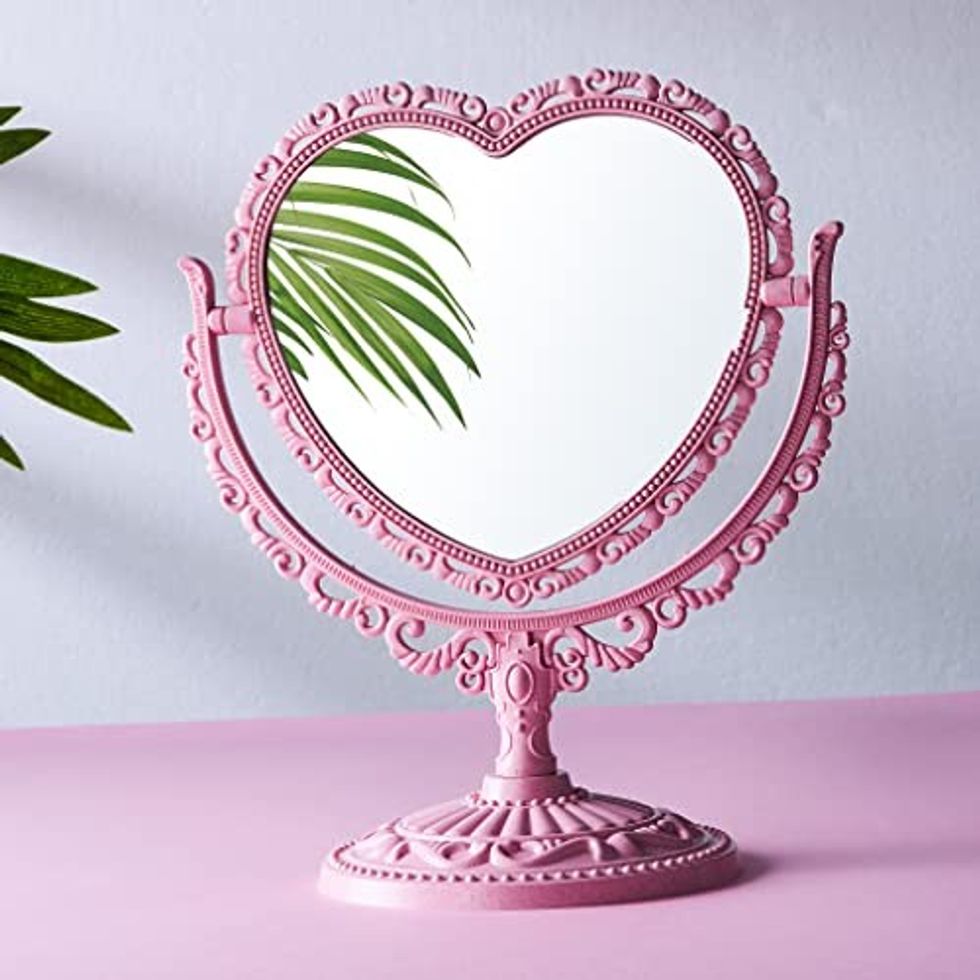 See it on AmazonYour Vanity Needs this RECEESOON Pink Heart Mirror Double Sides