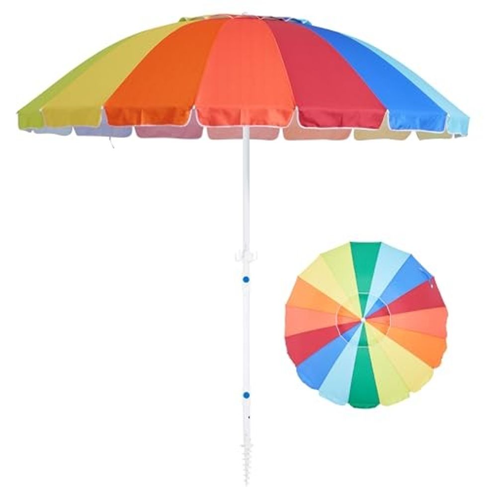 This umbrella will be a staple this summer. It has UV protection for sunny days, and it's waterproof for days with a little bit of rain. It comes with a sand anchor for stable use on the beach, but it's detachable for use elsewhere. It also includes a carrying bag, making it easy to pack back into your beach bag and carry with ease.