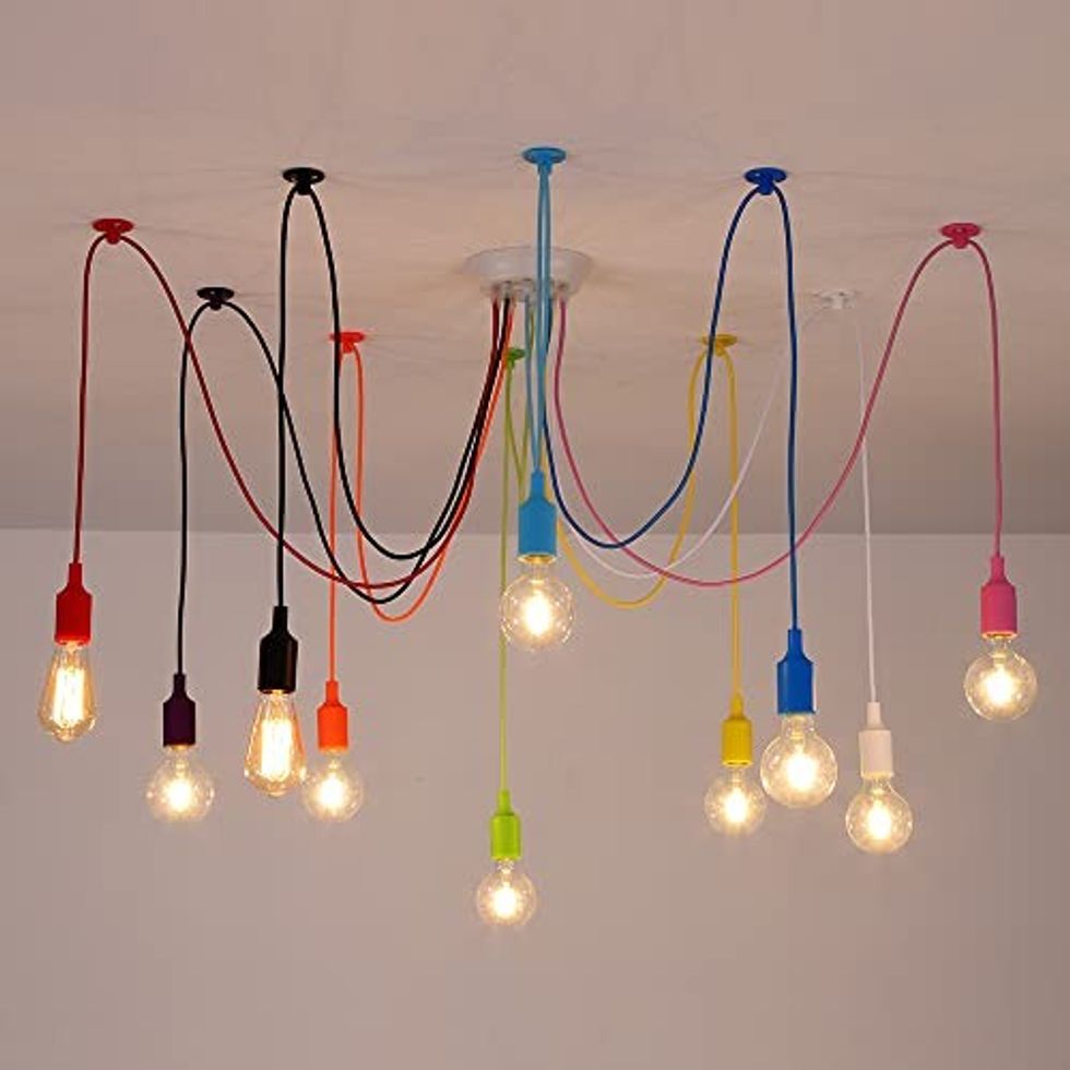Not only does this light fixture add fun pops of color, but it also makes your ceiling look like a work of art. The hanging bare bulbs and the colorful cables make it look like a glamorous art installation.
