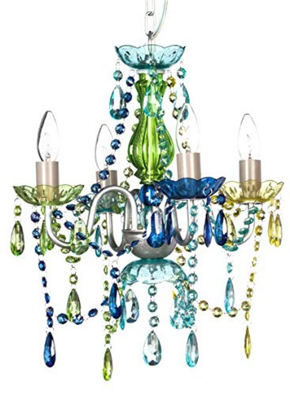 Add tons of color to your home with this beautiful, crystal-like chandelier. The piece glitters and sheds just the right amount of light in your foyer, dining room, or even in your bedroom.