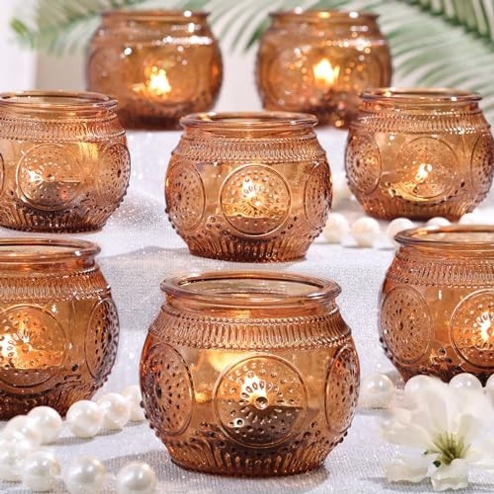 You can use this set of candle holders anywhere in your home to give it a homey vibe. They come with 36 pieces that can accommodate real or artificial candles. The stunning amber color will match the rest of your boho decor perfectly.