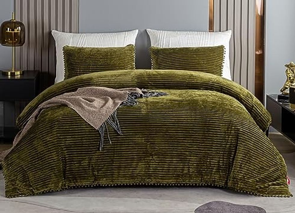 Take inspiration from Mother Nature with this sultry olive green comforter set. The plush, velvet material gives the bed a luxurious feel that is perfect for slipping into after a long day.