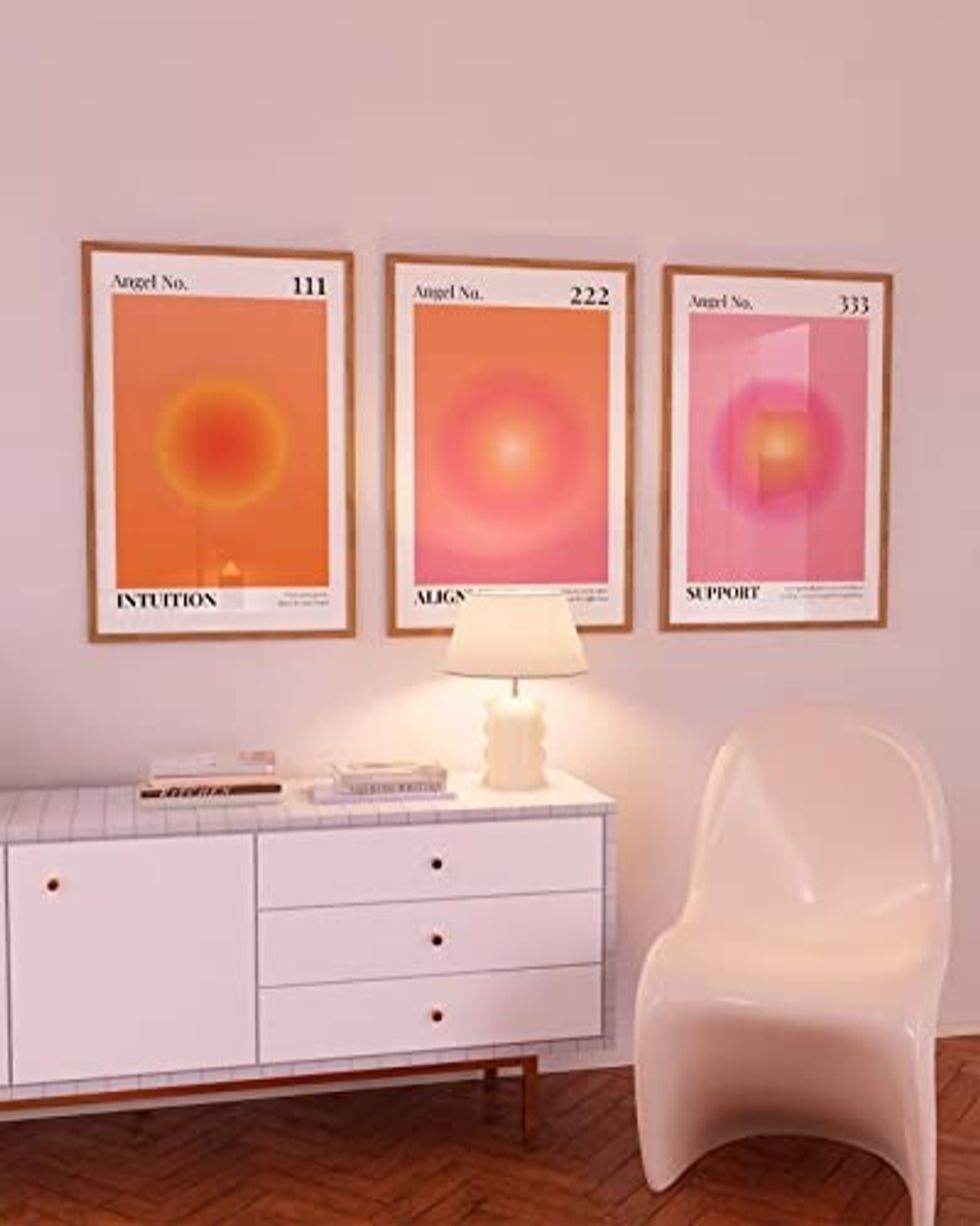 Bring the good vibes with these stunning aura posters. The bold colors are meant to inspire positive affirmations, making them ideal for the bedroom.