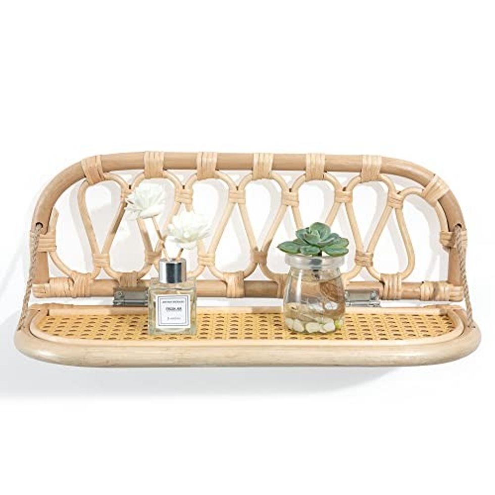 Add a touch of rustic charm to your walls with this woven floating shelf. It looks adorable on its own, but you can also install multiple shelves to layer on the wall. With its wide space, you can add storage baskets or decorative pieces to enhance its appeal. It will look stunning in any room, from your bathroom to your bedroom.