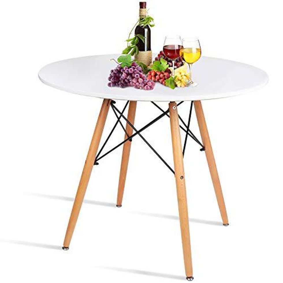 This chic, modern dining table checks every box. Not only is it a neutral color with exposed legs, but it's also small enough to serve its purpose without clogging up unnecessary room.