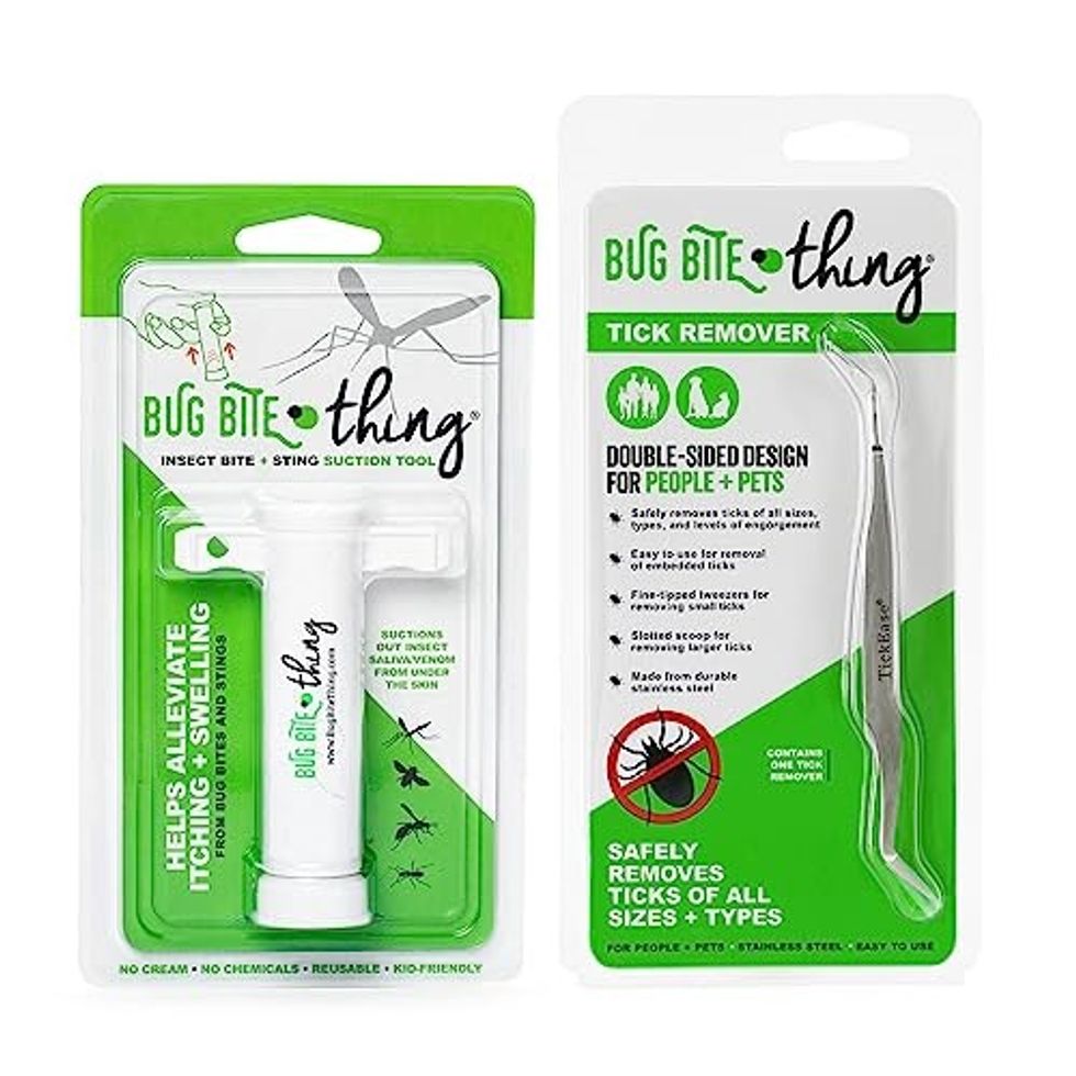 Address insect bites immediately with the Bug Bite Thing suction tool and tick remover combo pack. These practical tools effectively remove ticks and irritants from the skin to reduce itchiness and swelling.