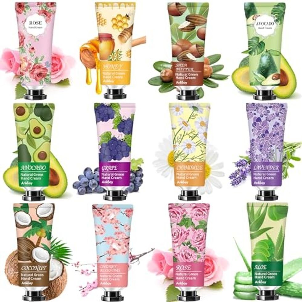 Dry hands will certainly want squirts from this moisturizing hand cream gift set. The set includes 12 total bottles, featuring aromas like chamomile, rose, honey and more. Plus, it comes out to less than a dollar per bottle in total.