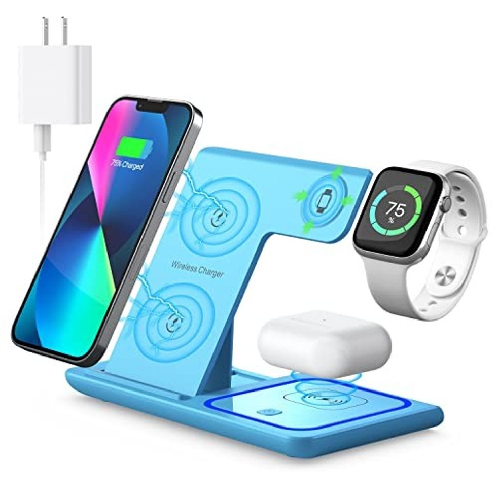 Consolidate all of your charging needs into one spot and reduce the number of cords and declutter with this 3-in-1 charging station. It's compatible with Apple products and will simultaneously hold a phone, AirPods, and watch.