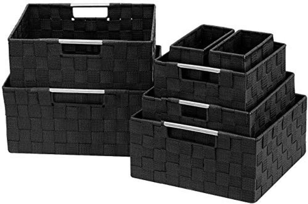 These seven storage baskets include six different sizes in one package, making them more than suitable for a variety of storage jobs around the house, big and small. They're perfect for use on shelves and have metal handles that are sturdy and convenient whenever you need to move or retrieve something.
