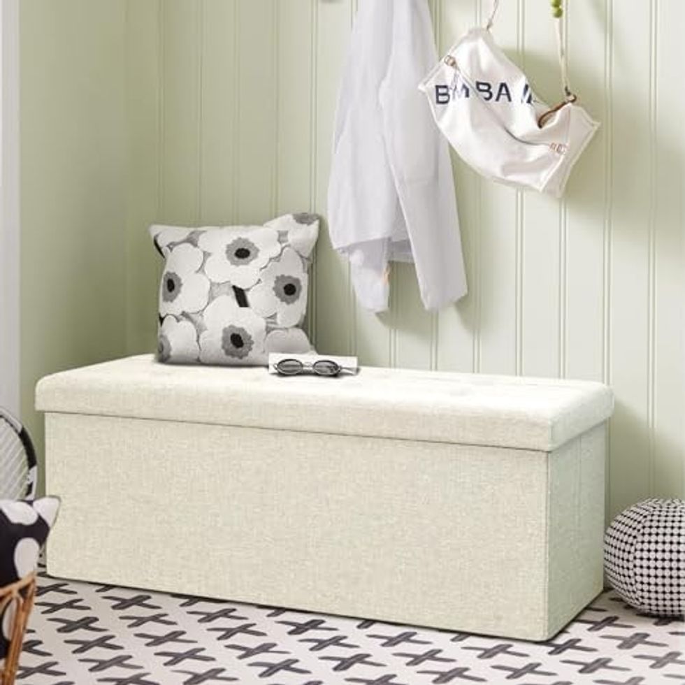 This large ottoman has multiple uses, not only giving you lots of storage space but also serving as a bench and footrest. It's the perfect size to place at the foot of your bed or simply in the living room and store items like blankets, garments, bags, toys, and much more. Plus, the tufted linen fabric adds an elegant touch, making it a pretty addition to any room.