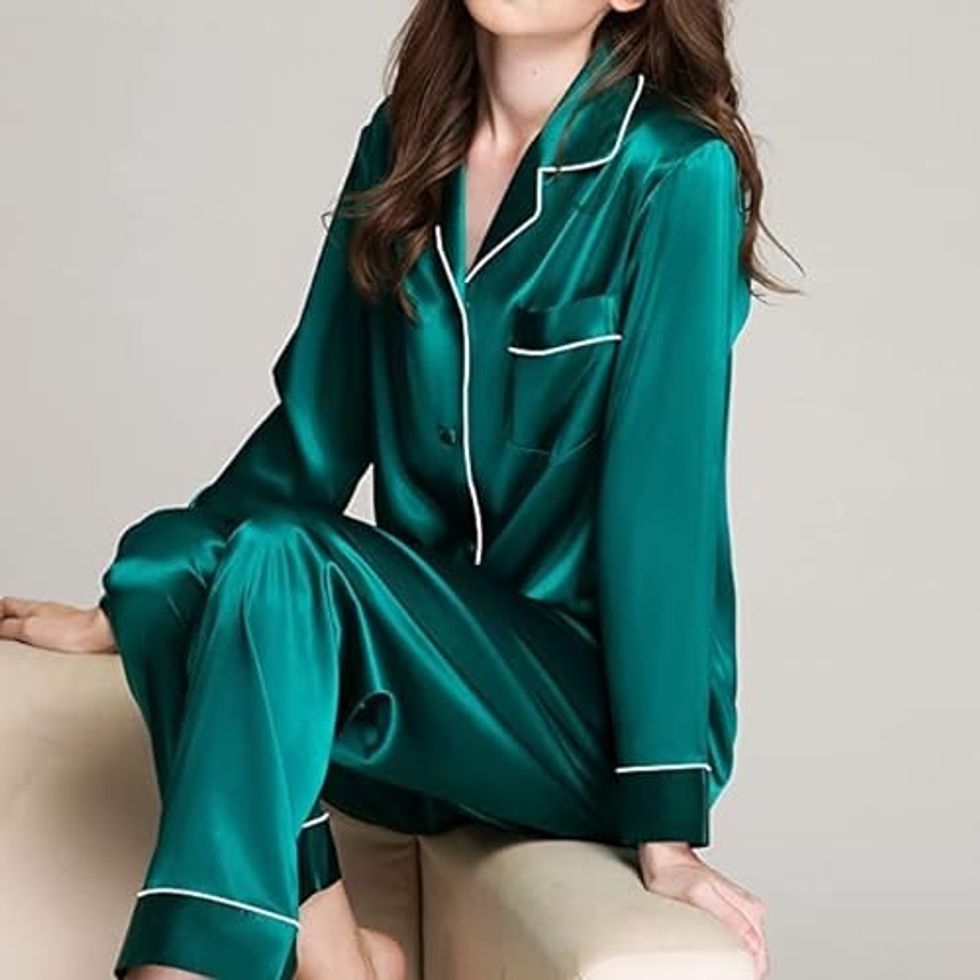 There's nothing better than spending a day in your pajamas at home. Sit back, relax, and enjoy the coziness of these chic Satin Silk Pajamas while reading a good book by the fireplace.
