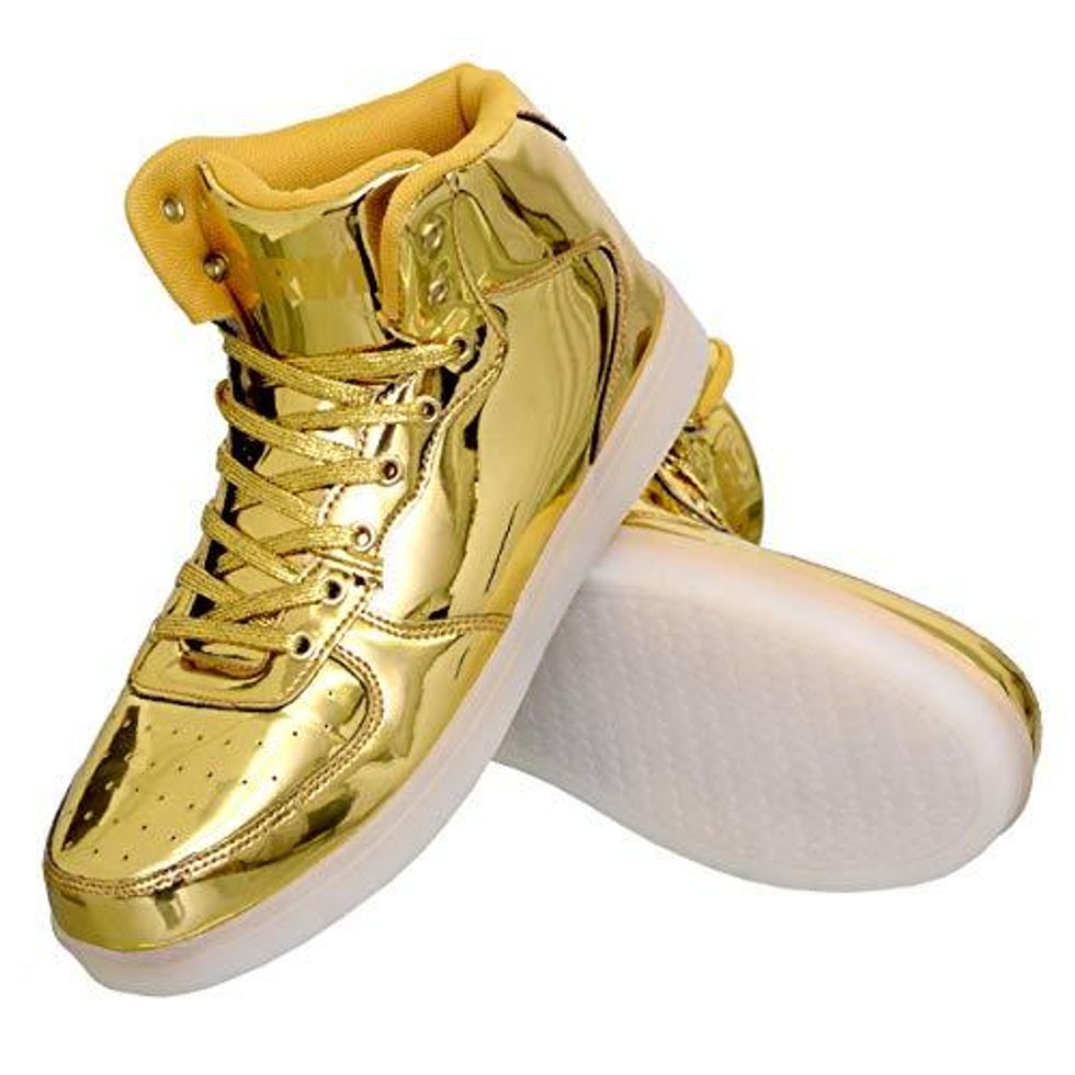 If there's one thing we can say for certain about 2023, it's that you're going to see a lot of metallics. Shoes, pants, tops, accessories: if you can make it shiny, you're going to want to. Start from the ground up with these bright gold sneakers.