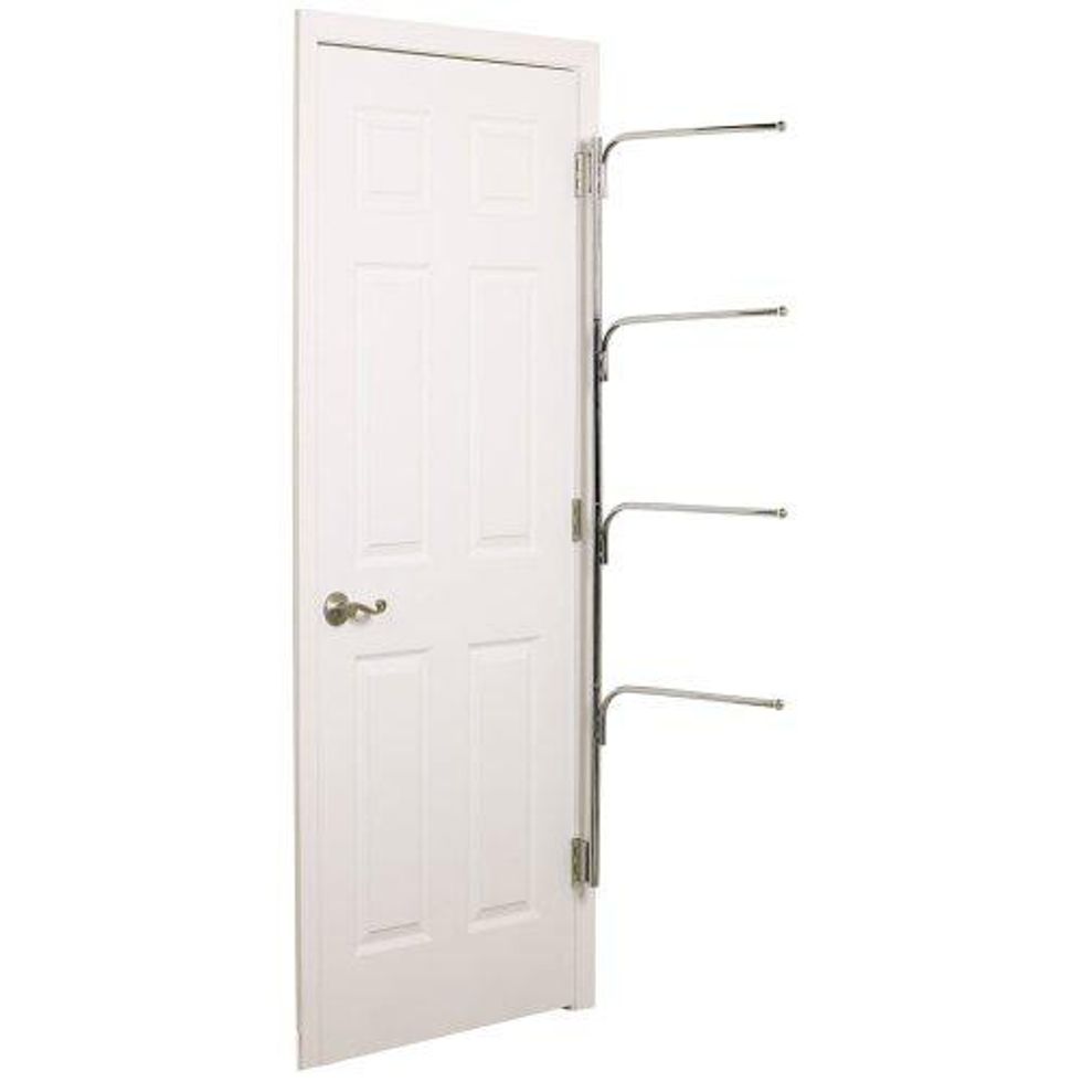 The space behind the door is always unused, but in a small house you have to use all the space you can! This easy to install towel rack makes use of that behind the door space and has 4 bars to store towels in between uses. You can also use it to hang laundry that can't be dried.