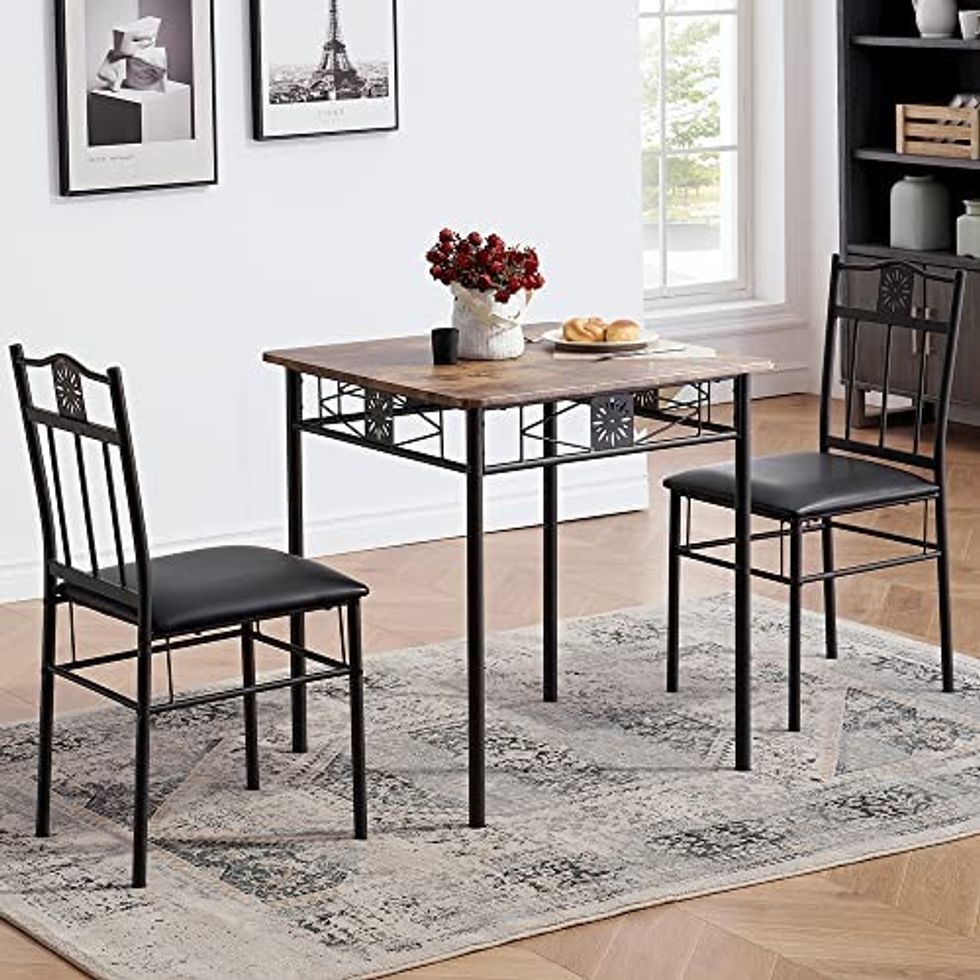 This chic dining set is perfect for cozy apartments or intimate dining areas. It adds a dash of contemporary elegance with its wooden tabletop and steel frame, while its compact size makes it an ideal solution for those tight on space, ensuring you don't compromise on style while maximizing functionality.