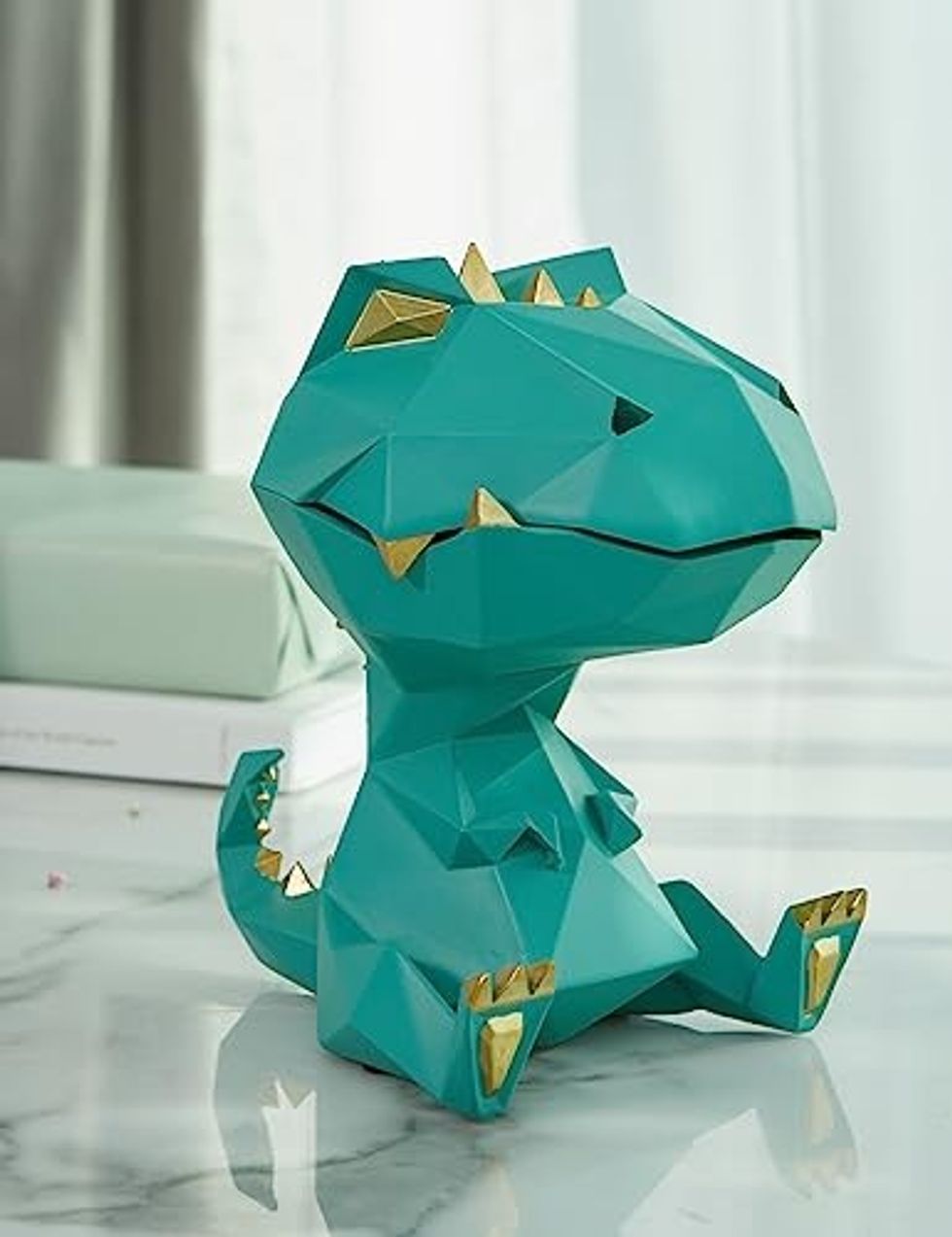 Store your treats in style with the dinosaur cookie jar candy dish. This modern, green polyresin sculpture adds a pop of art to your home decor. Perfect as a candy dish or for dinosaur-themed gifts, it’s a fun and functional accessory.